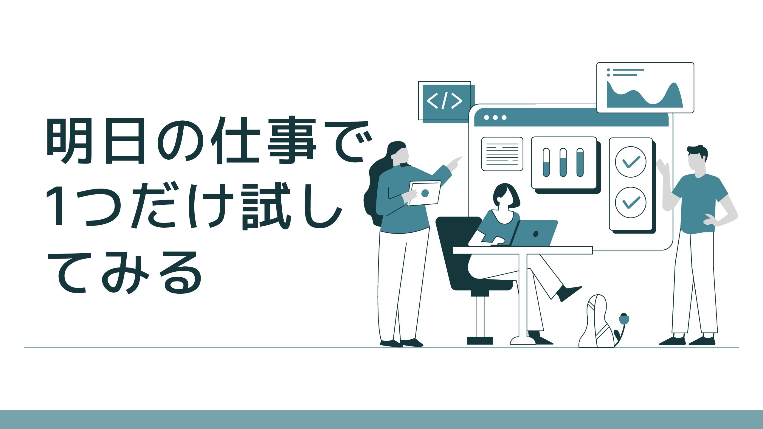 「全部やろう」と思わなくていい。明日の仕事で1つだけ試してみる——それだけでいい。小さな体験が積み重なって、じわじわと仕事の手触りが変わっていく。
